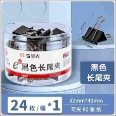 晨光中号32mm长尾夹票据夹文具夹子办公用品发票夹收纳夹燕尾夹黑色蝴蝶凤尾夹鱼尾夹文件夹子 【黑色】24枚